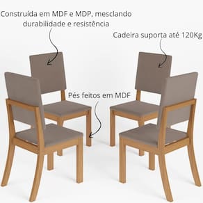 MDF,MDP,Espuma D18,Suede AveludadoKit com 4 Cadeiras de Jantar Milla Nature / Marrom Amêndoa - Feitas para Durar: Beleza e Robustez em sua Sala