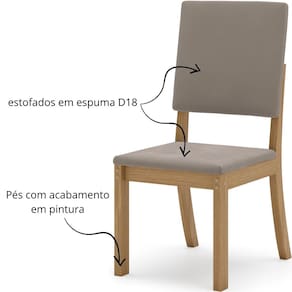 Assento e encosto estofados em espuma D18, com revestimento em Suede Tramado, e estrutura resistente em MDF e MDP.