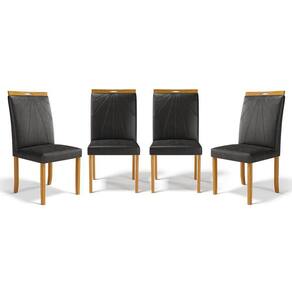 Kit Com 4 Cadeiras Maiara Madeira Maciça Estofadas Para Mesa De Jantar Courino Preto 503 - Conjunto Kit Com 4 Cadeiras De Sala De Jantar Estofadas