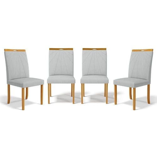 Kit Com 4 Cadeiras Maiara Madeira Maciça Estofadas Para Mesa De Jantar Linho Cinza 407