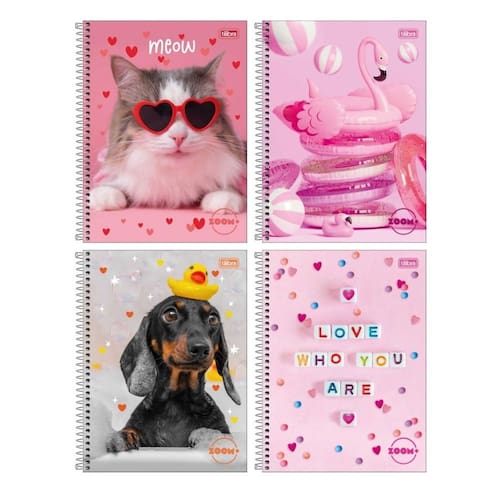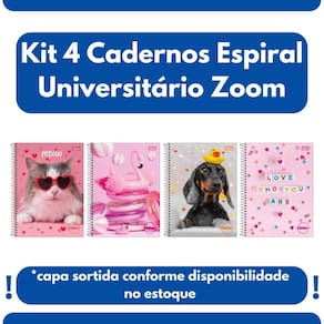 Kit 4 Cadernos Espiral Tilibra 96 Folhas Zoom Feminino Aula