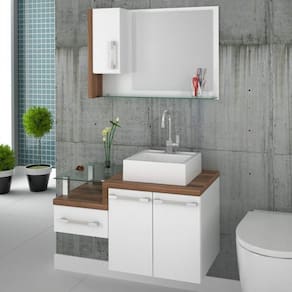 Altura do Conjunto: 51 cm Ambiente: null Ambiente Principal: Banheiro Cor: Branco/Nogal Informação Complementar: 4x Gabinete para Banheiro 2 Portas 1 Gaveta com Cuba Q35 e Espelheira Legno 830W Branco/Nogal Largura: 83 cm Altura: 51 cm Peso: 35 kg Profundidade: 43 cm Necessita Montagem: Sim