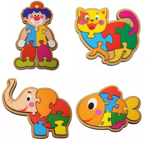 Kit com 4 Quebra Cabeças Elefante + Palhaço + Gato + Peixe Quebra cabeças poucas peças para primeira infancia Esse kit contém: 01 Quebra cabeça Elefante 01 Quebra cabeça Palhaço 01 Quebra cabeça Gato 01 Quebra cabeça Peixe Um dos brinquedos educativos mais buscados pelas famílias são os quebra-cabeças Educando e ao mesmo tempo divertindo, jogos de quebra-cabeça infantil para montar auxiliam a criança a trabalhar noções de movimento, coordenação motora, raciocínio lógico e concentração. Além disso, com diversos formatos atraem a atenção e os sorrisos de qualquer criança Composição elefante: 1 base de 23,5 x 17 x 1,2 cm e 7 peças de encaixe. Composição gato: 1 base de 23,5 x 17 x 1,2 cm e 7 peças de encaixe. Composição palhaço: 1 base de 23,5 x 17 x 1,2 cm e 8 peças de encaixe. Composição Peixe: 1 base de 23,5 x 17 x 1,2 cm e 8 peças de encaixe. Material: Madeira A Equipe Brinque e Leia Tem Prazer Am Atendê-lo Homologação Inmetro: 6492/2021-BRI-5
