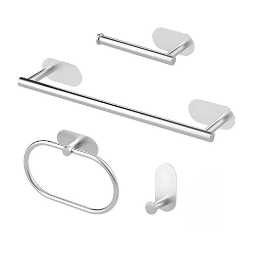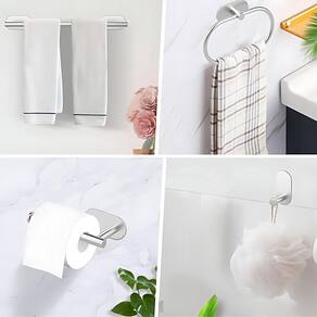 Kit com 5 acessórios de banheiro feito em inox, de alta qualidade.
