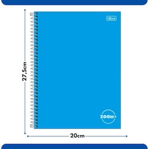- Kit com 5 cadernos de capa dura na cor azul - Cada caderno possui 96 folhas pautadas - Formato espiral que assegura praticidade - Papel de qualidade para escrita suave - Design moderno e exclusivo da linha Zoom Tilibra