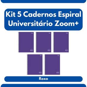 Kit 5 Cadernos Espiral Tilibra com 96 Folhas Zoom Roxo
