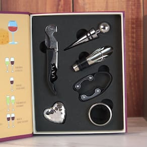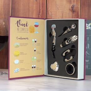 A escolha de um vinho deve sempre ser baseada na ocasião em que será servido, festa, reunião, jantar... Cada ocasião pede um vinho diferente, mas todas combinam com amor e acessórios!É o presente perfeito para quem irá compartilhar com você este momento.Estojo em MDF formato livro com pintura temática, perfeita para completar sua coleção e agregar na decoração do ambiente.Especificações do produto:Material do Estojo: MDFMaterial dos acessórios: Metal.Dimensões do produto:Altura: 21cmLargura: 4cmComprimento: 16,5cmItens Inclusos:- Estojo decorado- Saca Rolhas.- Tampa para Garrafa.- Oxigenador.- Corta Lacre.- Anel Salva Gotas.- Enfeite Coração.
