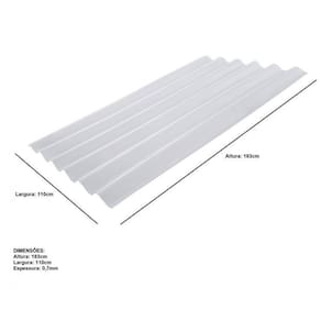 Telha em Policarbonato, com alta resistência, tratamento Anti UV com garantia de 10 anos contra amarelamento. Ideal para que necessita de entrada de iluminação natural. Pode ser utilizado em varandas, pergolados, cobertura de garagens e residências ou onde sua criatividade imaginar Acabamento: Natural Altura do Conjunto: 183 cm Ambiente: null Ambiente Principal: Jardim e Varanda Cor: Branco Cor Predominante: Branco Garantia do Fornecedor: 5 anos Informação Complementar: 5x Telha Policarbonato 183cm x 110cm Onda Alta Largura: 110 cm Altura: 183 cm