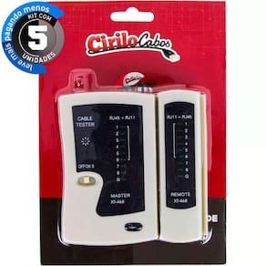 Kit Com 5 Testes De Rede Rj45 Rj 11 A Cirilo Cabos criou o Kit com 5 Testadores de Cabo de Rede RJ-45 e RJ-11 para você que deseja levar mais e pagar pouco, ideal para quem trabalha com instalações de cabos de rede e telefone. Através dessa ferramenta é possível verificar se os cabos estão funcionando de forma correta. Como utilizar É bem fácil utilizar o Testador de Cabo de Rede, basta conectar um ponta do cabo no terminal de teste máster e a outra no terminal remoto Remote , o terminal de teste irá enviar um sinal, o qual deve apresentar a mesma sequência no visor do testador máster e do terminal remoto remote , lembrando que para seguir a mesma sequência o cabo precisa estar crimprado de forma correta. Para Testar e Certificar Cabos de Rede Fácil Utilização Resultados Rápidos e Precisos Design Compacto Especificações Técnicas: Marca: Cirilo Cabos Modelo: XT-468 Plugs compatíveis: RJ45 e RJ11 Cabos: CAT-5 e CAT-6 Alimentação: Bateria 9V Não acompanha o produto Acompanha: 5 Testadores de Cabo de Rede RJ45 e RJ11 da Cirilo Cabos Peso Individual: 0.125g Peso do Kit: 0.625g Dimensões do Produto: A x L x C 10,2 x 2.8 x 10 cm. Garantia: 3 meses