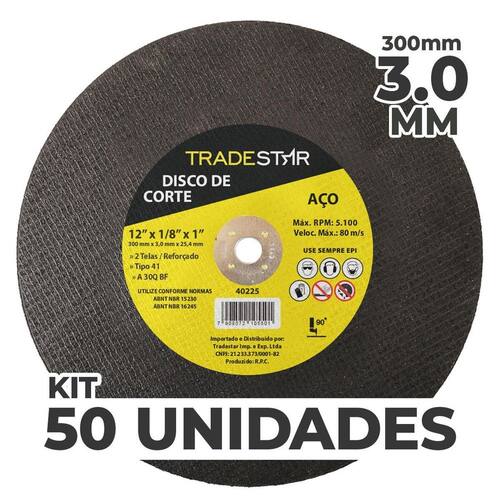 Kit c/ 50 Discos de Corte Metal 12 300x3,0 mm Furo 25,04 mm O Disco de Corte Metal 12 300x3,0 mm com Furo 25,04 mm, a escolha indispensável para profissionais que buscam performance elevada e resultados precisos no corte de metais. Com um diâmetro de 300mm e uma espessura de 3,0mm, este disco oferece cortes rápidos e eficientes em uma ampla variedade de materiais metálicos. Principais Características e Aplicações: Realize cortes precisos e eficazes em diversos metais, desde aço até ferro fundido. Perfeito para uso em projetos industriais, construção civil e manutenção. Como Obter Resultados Notáveis: Certifique-se de que o material esteja firmemente fixado e seguro antes de iniciar o corte. Utilize o disco em uma esmerilhadeira angular compatível com o furo do disco. Mantenha a esmerilhadeira em um ângulo apropriado e execute movimentos suaves para um corte uniforme. O Disco de Corte Metal 12 300x3,0 mm com Furo 25,04 mm é a ferramenta confiável que oferece cortes rápidos e precisos, assegurando resultados superiores em cada aplicação. Adquira agora e experimente a potência e a precisão que farão a diferença em seus projetos de corte. Disco De Corte Para Aços Indicado Para Corte De Aços. 2 Telas/Reforçado. Tamanho: 12 300mm Espessura: 3,0 MM Furo: 25,4 Quantidade por embalagem - 50 unidades 90 dias após a compra. Imagens meramente ilustrativas As tonalidades da cor do produto podem sofrer alterações de acordo com a tela que estiver usando para visualização. Vantagens de Comprar com a JJC Ferramentas: Experiência e Confiança: Somos especialistas em ferramentas e acessórios, garantindo produtos de qualidade e desempenho superior. Variedade e Qualidade: Oferecemos uma seleção abrangente de ferramentas, sempre priorizando a durabilidade e eficiência. Atendimento Personalizado: Nossa equipe está pronta para ajudá-lo, oferecendo suporte técnico e orientações precisas. Entrega Rápida: Garantimos uma logística eficiente, assegurando que seu pedido chegue no menor tempo possível. Satisfação Garantida: Se por algum motivo não ficar satisfeito, oferecemos política de devolução sem complicações. Marca: Não Informado
