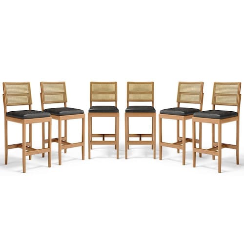 • 6 Banquetas Modelo Milena Em Madeira Com Assentos Estofados (Montadas)