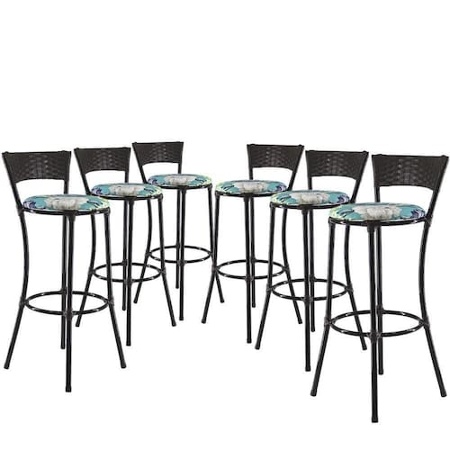 Kit Com 6 Banquetas Alta Forts Fibra Uv Bancada, área Goumert, Bar, Piscina, Balcão, Floral Azul