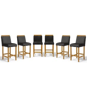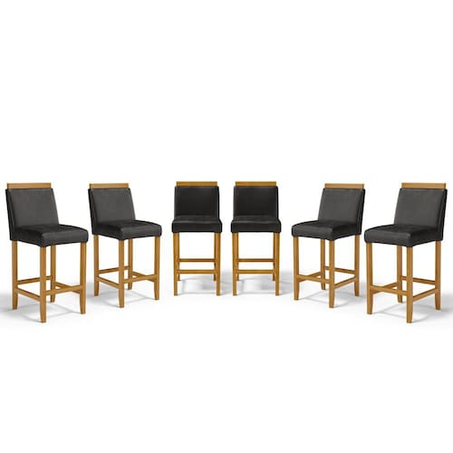 Madeira MaciçaKit Com 6 Banquetas Eloá Madeira Maciça Assento Estofado Para Bancada Courino Preto 503 - Banqueta Banquinho Em Madeira Maciça Encosto Para Bancada