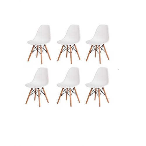 Kit Com 6 Cadeira Charles Eames Eiffel Dkr Wood Branca Cadeira Eiffel Eames Base Madeira A CADEIRA CHARLES EAMES EIFFEL foi criada nos anos 50, é vencedora do Museu de Nova York da concorrência Design de Mobiliário Low-Cost Arte Moderna Internacional. Sua base é em MADEIRA no formato de uma torre faz com que o ambiente não fique sobrecarregado. Adequa-se perfeitamente para compor conjunto de mesa de jantar ou qualquer outro ambiente em sua casa ou escritório. Ideal para receber amigos e familiares com um toque de elegância e charme. As pernas da cadeira são em madeira e fios de aço preto no qual garantem estabilidade à cadeira.