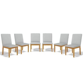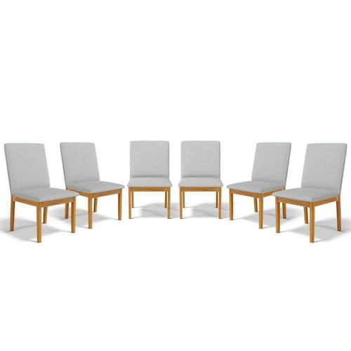 Kit Com 6 Cadeiras Daniela Madeira Maciça Estofada Para Mesa De Jantar Detalhe De Madeira Nas Costas Linho Cinza 407 - Cadeiras Para Sala De Jantar Estofadas