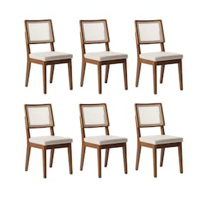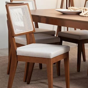 Transforme seu ambiente com este conjunto de 6 cadeiras que une design clássico e conforto superior. Com estrutura em madeira maciça e o charmoso detalhe em palhinha sintética no encosto, são perfeitas para compor sua sala de jantar para receber toda a família e amigos.