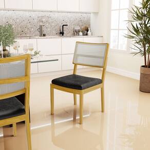 Madeira-Madeira-Madeira-Madeira-MadeiraKit Com 6 Cadeiras Milena Madeira Maciça Assentos Estofados Encostos De Tela Sintética Courino Preto 503 - Conjunto Kit Com 6 Cadeiras Em Madeira Maciça Encosto De Tela Sintética
