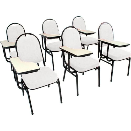 Kit com 6 Cadeiras Universitárias com prancheta para Auditórios Linha Hotel Branco – Tonalidade da Cor: Branco  –    Marca: Design Office Móveis  - Modelo: Kit com 6 Cadeiras Universitárias com prancheta para Auditórios Linha Hotel Branco   O Kit com 6 Cadeiras Universitárias com prancheta para Auditórios  e Hotel da marca Design Office Móveis, foi projetado para proporcionar conforto e bem estar, tornando o dia-a-dia mais agradável. Utilizado para compor diversos tipos de ambientes a Linha Hotel da marca Design Office Móveis são modelos de cadeiras para hotéis e auditórios, empresas de treinamento, salas de convenções, auditório e hotéis, com medidas avantajadas, ergonômicas e confortáveis, que se diferenciam de modelos de cadeiras para hotéis e auditórios convencionais existentes no mercado, de fabricação nacional com qualidade e garantia de 1 ano, direcionado para: Hotel , Auditório, salas de convenções, igrejas,empresas de treinamento, escolas, ambientes corporativos e empresas em geral.   A Cadeira é entregue totalmente montada, sem a necessidade de qualquer montagem adicional, é só tirar da caixa e sentar-se.    Dimensões: Largura do assento: 39,0 cm Profundidade do Assento: 41,0 cm Largura do Encosto: 34,0 cm Altura do Encosto: 40,0cm Altura Total: 91,0 cm Profundidade Total com prancheta: 72,5 cm Largura com prancheta: 55,0cm Peso da cadeira: 5kg - Empilhável com até 8 cadeiras sem a prancheta Altura do chão até o assento: 46,5 cm Estrutura da Cadeira: Fixa com 4 pés.  Cor da Estrutura: Preto Com prancheta Kit com 06 Cadeiras   Marca: Design Office Móveis   Revestimento do Assento e Encosto: Material Sintético Garantia: 12 Meses/1 ano cobrindo defeitos de fabricação.  **Medidas aproximadas, podendo haver variações**   Observações Importantes: As medidas descritas nesse anúncio são aproximadas podendo sofrer pequenas variações sendo maiores ou menores.   As cores das fotos do produto são meramente ilustrativas, a tonalidade da cor pode sofrer alterações sendo mais clara ou mais escura.   Ao receber a mercadoria efetuar a conferência. Confira as dimensões do produto e certifique-se de que passará normalmente por elevadores, portas, escadas ou corredores de sua residência.
