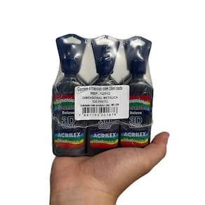Kit com 6 Dimensional Metálica é um excelente produto, tinta de excepcional versatilidade, aderência e muito fácil de usar. Pode ser aplicado diretamente com o bico ou pincel sobre tecidos de algodão não sintéticos e sem goma.