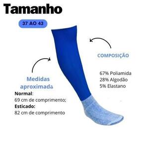 Kit com 6 Meiões de Futebol pés em Algodão Conforto Adulto Cor: Royal Descrição Kit com 6 Meiões tradicionais para futebol - Ideal para fardamentos Produzido com pé em algodão que garante o conforto e evita bolhas durante a pratica do esporte. Corpo e cano do meião em poliamida e elastano garantem o suporte da caneleira e panturrilha. Medidas aproximadas: - Normal: 69 cm de comprimento; - Esticado: 82 cm de comprimento; - Tamanho: 37 ao 43. Composição - 67% Poliamida; - 28% Algodão; - 5% Elastano. Conteúdo da embalagem: - 6 pares de meias. do fabricante: 30 dias Marca: Não Informado