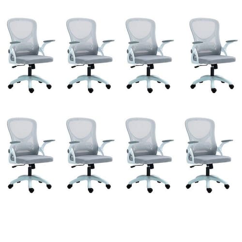 CONJUNTO COM 8 UNIDADES Altura do Conjunto: 115 cm Ambiente: null Ambiente Principal: Escritório codigo_ean: 7900288154330 Cor: Cinza Cor do Produto: Cinza Giratória: Sim Informação Complementar: 8x Cadeira Escritório Diretor Office Columbus com Tela Mesh Branco/Cinza Largura: 60 cm Altura: 115 cm Peso: 10,5 kg Profundidade: 57 cm Necessita Montagem: Sim