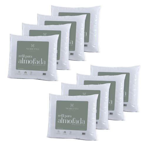 - 100% Poliéster Ambiente Principal: Quarto Comprimento: 45 cm Cor: Branco Cor do Produto: Branco Espessura: 15 cm Itens Inclusos: 8 Almofadas Largura: 45 cm Marca: Moretto Material do Enchimento: Silicone Material Principal: Poliéster Origem do Produto: Nacional País de Origem: Brasil Peso: 4,8 g Recomendações de Uso, Manutenção e Limpeza: Lavável Zíper aparente: Não