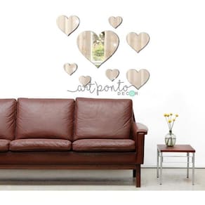 Kit Com 8 Espelho Decorativo Coração Casa Quarto SalaCaracterísticas:- modelo: ht08 p- espessura: 1,2 mmTamanho:01 x coração de 11 cm03 x corações de 6 cm03 x corações de 3,5 cm01 x corações de 3 cmAcompanha01 x kit de 8 corações em espelho acrílicoAplicação:- material mais resistente que o vidro além de ser mais leve também por isso os espelhos em acrílico são indicados para o uso onde se preza pela segurança.Onde aplicar:- casa: parede de quarto, sala, varanda, etc...- móveis em geral- lojas: vitrine- escritório- escola- crecheCuidados:- Nossos espelhos decorativos podem ser aplicados em qualquer superfície LISA, ideais para aplicação em paredes PLANAS, vidros, azulejos e onde mais sua imaginação mandar.- Utilize fitas dupla face para fixação dos espelhos. Kit já vai com as fitas.- Para limpeza utilizar flanela macia e água.- O acrílico espelho possuí uma PELÍCULA de proteção no lado espelhado.- Essa PELÍCULA a primeira vista pode causar a impressão de riscado ou embaçado as peças, mas é só removê-la após a instalação. Marca: Tecnotronics
