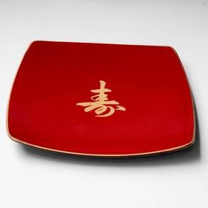 Prato com acabamento vermelho quadrado de excelente qualidade, alto brilho e pintura do ideograma em dourado que representa felicidade. Peça indispensável para amantes da culinária oriental, com cores fortes inspiradoras nas tradicionais decorações japonesas. Perfeita para apreciar a culinária japonesa entre amigos e familiares de forma tradicional. Ideal para servir sushis, sashimis, niguiris e temakis de forma tradicional no uso doméstico ou nos restaurantes. - Facilita e dar mais estilo às suas refeições orientais. Cuidados: - Lavar com água morna e sabão neutro utilizando esponja macia, seguido de pano seco. - Não utilizar produtos químicos ou abrasivos na limpeza. - Não vai a lava-louças.