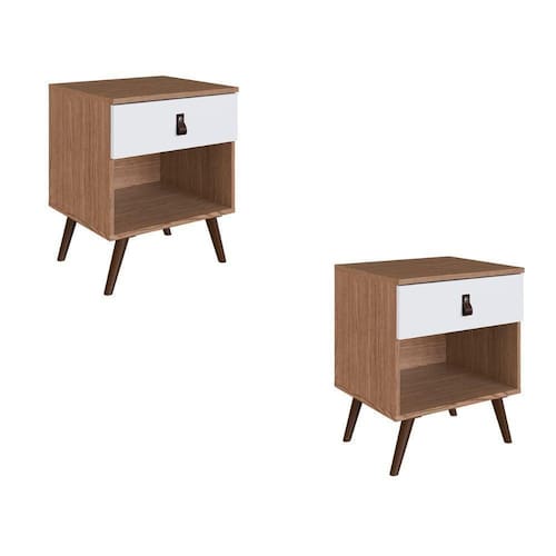 Características que vão te encantar: Design atemporal e funcional para complementar qualquer estilo de decoração. Materiais de alta qualidade garantem durabilidade e beleza por anos a fio. Detalhes meticulosamente selecionados, incluindo corrediças metálicas, puxadores em couro sintético e frente em Melamina BP. Cada mesa de cabeceira oferece 1 nicho espaçoso e 1 gaveta para armazenamento conveniente de seus pertences.