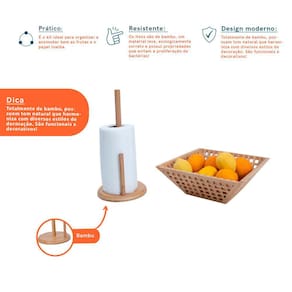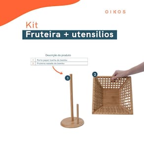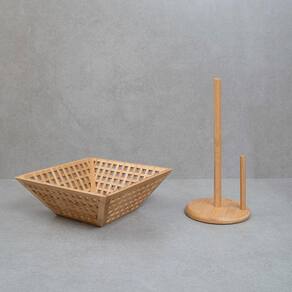 Kit com fruteira vazada de bambu e porta papel toalha de bambu - Oikos