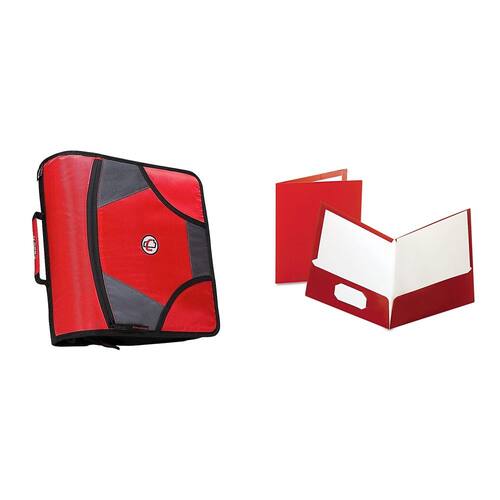 - O kit inclui: fichário com zíper Casafoyer de 4 polegadas e pacote de 25 portfólios laminados em vermelho