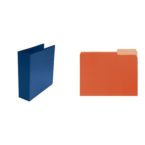 - O KIT INCLUI: fichário azul com visualização em D de 3 polegadas e pacote com 100 pastas de arquivo reversíveis laranja