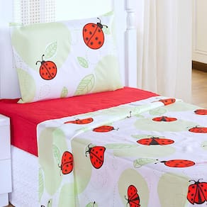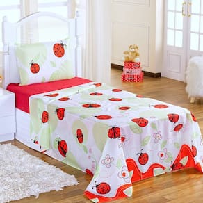 Jogo de cama - quantidade de peças: 03 - cor: estampado joaninha - bordado: não - fabricado: n/a