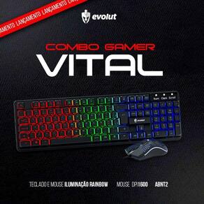 O Kit Combo Teclado e Mouse Gamer Evolut Vital EG-57 oferece uma solução completa para quem busca desempenho, conforto e estilo durante o uso diário ou em sessões intensas de jogos. Com teclas de perfil alto, iluminação Rainbow LED e layout ABNT2, o teclado garante excelente resposta e usabilidade. O mouse óptico acompanha o conjunto com resolução ajustável e design ergonômico, tornando o kit perfeito para jogadores e usuários que desejam um periférico funcional, resistente e visualmente atraente.