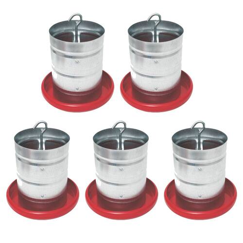 Conhecido como comedouro suspenso, Utilizado por sitiantes em aviários, tubo galvanizado, base prato plástico vermelho. Características: Volume 5kg de ração, Possui regulagem na travessa superior em conjunto com a haste, O prato com 26 x 26 Cm é injetado com material 100% puro virgem PP H 103 com 0,02% "UV" contra raios ultravioletas, Altura Total 24 Cm, Fácil acesso das aves ao alimento, Peso: 700g, Marca: Zatti Conteúdo da embalagem: Kit com 5 Comedouros com capacidade para 5kg de ração cada. Produto isento de registro Anvisa/Inmetro. Ean: 7898334223256