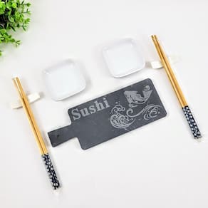 Kit Comida Japonesa 7pç Sushi Ardósia Cerâmica Hashi Kit Sushi 7 Pecas - Tabua Ardosia Molheiras Hashi Apoios Transforme sua experiencia gastronômica com o Kit Sushi 7 Pecas. Ideal para quem ama culinaria japonesa, o conjunto une elegancia e praticidade para servir sushi, sashimi ou entradas orientais com muito estilo. Itens inclusos no kit 1 Tabua de ardosia com cabo Altura: 1 cm Largura: 24 cm mais 5 cm de cabo Profundidade: 9 cm Peso: 280 g 2 Molheiras de ceramica Altura: 2 cm Largura: 8 cm Profundidade: 8 cm Peso total: 90 g 2 Pares de hashi Tamanho: 24 cm Peso total: 15 g 2 Apoios de hashi Medidas: 1,5 cm x 6 cm x 1,5 cm Peso total: 20 g Beneficios do produto Design moderno e sofisticado Perfeito para jantares especiais e momentos gourmet Materiais de alta qualidade e durabilidade Pratico e facil de limpar Ideal para presentear amantes da culinaria japonesa Uso recomendado Utilize para montar uma mesa posta oriental com toque . A tabua de ardosia destaca a apresentacao dos pratos. Os apoios de hashi mantem a organizacao e higiene na mesa. Diferenciais Kit completo com 7 pecas Acabamento premium Produto exclusivo Inigual Decor Marca: Não Informado