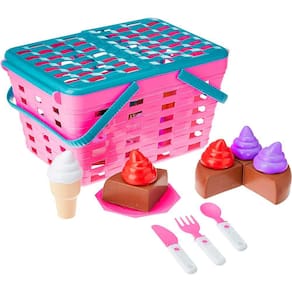 Kit Comidinha Infantil - Cesta Pic Cake - Magic Toys: brincar de comidinha agora ficou mais divertido. A Cesta Pic Cake tem alças para carregar e vem acompanhada diversos acessórios para se divertir brincando de piquenique. Uma brincadeira completa para estimular a imaginação e criar diversas histórias. Detalhes: • Cestinha com alças para carregar e tampa abre e fecha • Com diversos acessórios para brincar • Vem com bolo, cupcakes, utensílios de cozinha e muito mais Informações: • Produto: Cestinha Pic Kit Cake • Marca: Magic Toys • Coleção: Cesta Pic • Tipo: Comidinha de Brincar • Categoria: Brincando de Casinha • Subcategoria: Alimento e Comidinha Infantil • Tamanho (C x A x L): 26 x 14 x 18 cm • Conteúdo: - 01 Cesta - 01 Bolo com chantilly - 02 Cupcakes - 02 Sorvetes - 04 Pratinhos - 04 Garfinhos - 04 Colheres • Recomendação: para crianças a partir de 03 anos de idade Especificações: • Referência: 631 • Código de Barras: 7896839906315 • Embalagem (C x A x L): 26 x 14 x 18 cm • Embalagem (Peso): 0.498 kg • Material / Composição: Polipropileno • Registro: 000 643/2022 • Certificado: Órgãos Autorizados - OCP´S (Organismos de Certificação de Produtos) Benefícios de brincar: • Eleva a autoestima • Exercita a memória • Estimula o raciocínio • Exercita o imaginário • Desenvolve a criatividade • Desenvolve percepção visual • Desperta a atenção e curiosidade • Desenvolvimento neuropsicológico • Estimula habilidades motoras básicas • Incentiva a comunicação e linguagem • Desenvolve aspectos emocionais e afetivo • Estimula o reconhecimento de formas e cores Aviso: • As imagens são meramente ilustrativas • Os pesos, tamanhos e medidas são aproximados • As cores e estampas dos produtos podem ter variações • As informações são de responsabilidade do fabricante ou fornecedor Ean: 7896839906315
