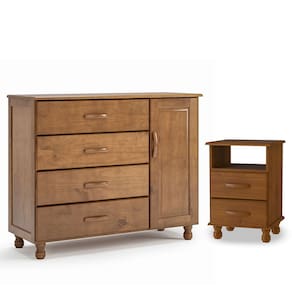 Transforme o seu quarto em um ambiente acolhedor e elegante com o Kit de Móveis em Madeira Maciça, composto por uma charmosa cômoda de 4 gavetas com sapateira e uma mesa de cabeceira com 2 gavetas. Fabricados em madeira maciça de pinus de reflorestamento, esses móveis combinam resistência, durabilidade e um toque rústico cheio de personalidade. A cômoda, com seus pés torneados e puxadores de madeira, oferece amplo espaço interno, ideal para manter roupas e acessórios sempre organizados. Já a mesa de cabeceira, compacta e funcional, conta com duas gavetas de corrediças metálicas e um prático nicho, perfeita para apoiar livros, luminárias e itens do dia a dia. O acabamento em pintura UV realça a beleza natural da madeira, garantindo sofisticação e charme a qualquer decoração. Um conjunto completo para quem busca qualidade, estilo e o aconchego da madeira verdadeira no quarto.