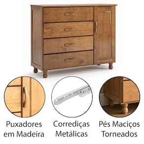 • 1 x Cômoda 4 Gavetas 1 Porta 100% Madeira Maciça Ariel