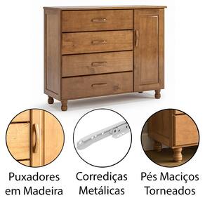 • 1 x Cômoda 4 Gavetas 1 Porta 100% Madeira Maciça Ariel
