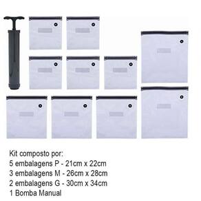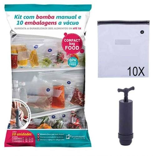 Kit 10 sacos a vácuo compact food + bomba manual - Paramount
