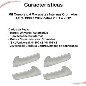 Kit Completo 4 Maçanetas Internas do Astra Até 2002 e Zafira até 2012