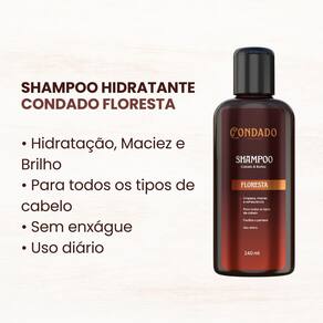 Kit Condado Floresta - Shampoo + Condicionador + Balm + Óleo + Colônia + Creme Modelador + NecessaireO Kit banho premium masculino Condado Floresta com Necessaire foi desenvolvido para homens que valorizam um cuidado completo aliado a estilo e sofisticação. Esse kit reúne produtos essenciais para manter cabelo, barba e visual impecáveis, além de proporcionar praticidade no dia a dia com a necessaire resistente e espaçosa.
