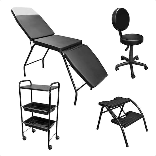 O kit perfeito para quem valoriza qualidade, conforto e organização. Composto por itens essenciais, ele oferece uma solução completa para clínicas, estúdios de estética, depilação, massagem, tatuagem e muito mais.