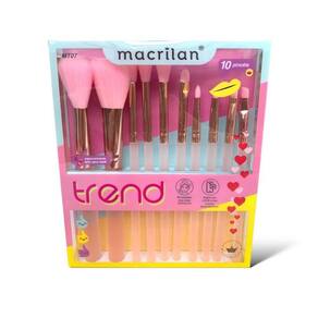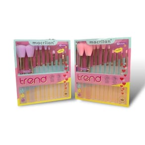 Kit Completo de Pincéis Para Maquiagem Macrilan Trend 10 un. O Kit pincel para maquiagem Macrilan, uma empresa brasileira, foi especialmente desenvolvi- do para uma aplicação de maquiagem homogênea. Isso porque o kit é composto de pincéis com cerdas sintéticas, macias que proporcionam um resultado leve e uniforme. Modo de usar: Pincel para Pó: utilize este pincel para aplicar pó facial, pó solto ou pó compacto em toda a face. Pincel para Blush: utilize para aplicar blush nas maçãs do rosto Pincel para Base Pequeno: utilize esse pincel para aplicar base, BB cream por toda a face. Pincel para Corretivo: utilize este pincel para aplicar corretivo ao redor dos olhos, olheiras e em pequenas imperfeições na face. Pincel para Corretivo Detalhes: utilize este pincel para aplicar corretivo em pequenas Imperfeições da face. Pincel para Sombra: utilize este pincel para aplicar sombra em toda região das pálpebras Pincel para Sombra: utilize este pincel para aplicar sombra em toda região das pálpebras Pincel para Sombra Detalhes: utilize este pincel para aplicar sombra nos cantinhos internos Dos olhos. Pincel para Delinear: utilize este pincel para aplicar delineador em gel na linha rente aos Cilios superiores e inferiores. Utilize também para delinear e corrigir as sobrancelhas. Pincel para Batom: utilize este pincel para aplicar batom e brilho labial. Limpeza e conservação: Para conservar melhor seus pincéis, aconselhamos que lave as cerdas uma vez por més com água fría e xampu neutro. Após a lavagem, deixe-os secar ao ar livre, sobre uma toalha macia, protegidos do sol. O cabo de plástico não deve ser molhado ou permanecer úmido, use apenas um pano seco e macio para sua limpeza. Não deixe seus incéis de molho, isto pode danificar as cerdas