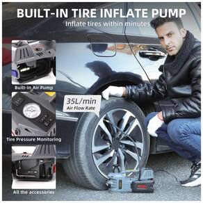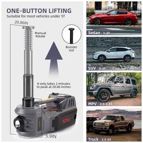 O kit EFFIROSO Portable 5 Ton contém um macaco de 5 toneladas que possibilita o levantamento automático do veículo, junto com uma bomba infladora de 150 PSI para rápida calibragem dos pneus. A chave de impacto elétrica permite a instalação eficiente dos parafusos dos pneus. Até iniciantes podem trocar pneus facilmente. Equipado com um motor de cobre puro de alta potência de 150W, suporta levantar até 5 toneladas a uma altura de 17,7 polegadas. Substitui as ferramentas tradicionais manuais de troca de pneus. Adaptável a ambientes severos, o motor funciona normalmente em temperaturas entre -15°C e 50°C, garantindo operação confiável, inclusive em áreas de alta altitude, litorâneas e extremamente frias. Com funcionamento simples e rápido, o sistema de controle Instantâneo completa o levantamento do veículo em apenas 2 minutos, aumentando significativamente a eficiência em comparação com os macacos manuais tradicionais.
