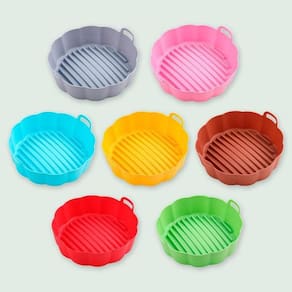 Com a bandeja de silicone as manchas de óleo não ficam impregnada na sua fritadeira elétrica, facilitando a limpeza e aumentando a vida útil da peça. As bandejas de silicone para fritadeira são uma excelente alternativa aos revestimentos de papel descartáveis. Elas são duráveis, assim você economiza dinheiro e ainda ajuda o meio ambiente. Evite de uma vez por todas que resíduos de alimentos ou óleo entrem na air fryer e evite que os alimentos grudem nela. As bandeja de silicone são totalmente laváveis na máquina de lavar louça e ajudam você a economizar seu tempo e energia após o cozimento. São um acessório de cozinha indispensável para air fryer, panelas a vapor, fornos, panelas instantâneas e micro-ondas, é uma ótima maneira de ajudá-lo a assar. A bandeja siliconada é reutilizável, feita de silicone de qualidade para produtos alimentícios, possui material macio, boa resistência ao calor e temperatura de operação variando de 20c a 240c.
