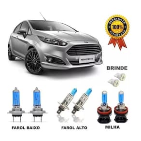 APLICAÇÃO FORD NEW FIESTA ITENS INCLUSOS: 01- PAR DE LAMPADAS SUPER BRANCAS H7 55W FAROL BAIXO 01- PAR DE LAMPADAS SUPER BRANCAS H1 55W FAROL ALTO 01- PAR DE LAMPADAS SUPER BRANCAS H11 55W FAROL DE MILHA 01 - PAR DE LAMPADAS T10 4 LED