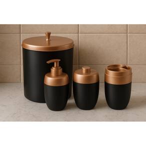 Kit Completo P/ Banheiro 4 Peças com Lixeira + Porta Escova Sabonete e Algodão