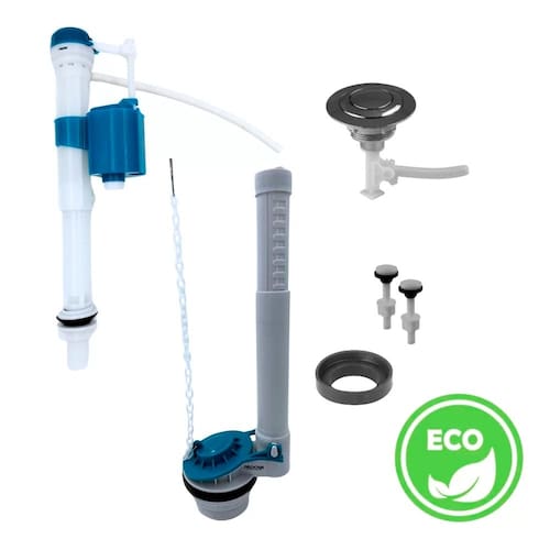 KIT COMPLETO MEC. DE ENTRADA AJUSTÁVEL ECO, MEC. SAÍDA AJUSTÁVEL E BOTÃO ACIONADOR SUPERIOR Ref.: 112.726-2 Indicado para todos os modelos de caixas acopladas com acionamento superior; Acompanha botão acionador em ABS Cromado 38mm/48mm; Pressão mec. entrada:1 a 120m.c.a.